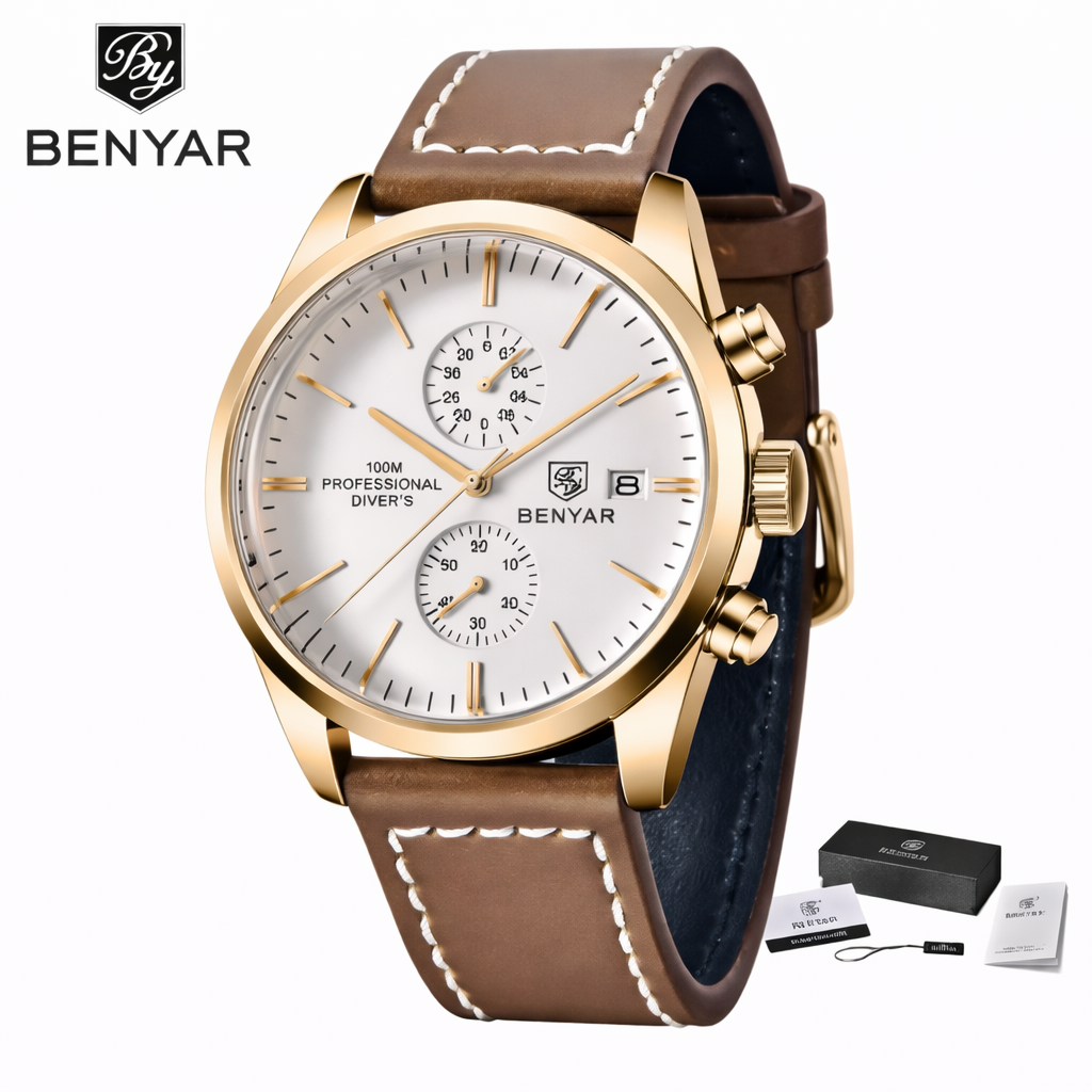 Reloj Benyar Elegance Classic para hombre: cronógrafo de lujo inspirado en la aviación
